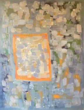 Homage to Something blue-green-orange with rectangle, 2014, oil on masonite, 18x14”