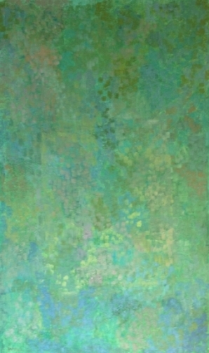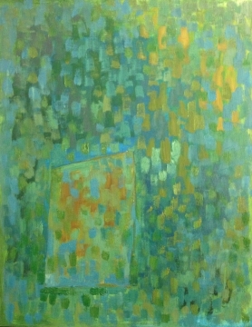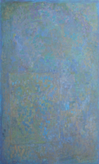 Homage to Something Green-blue-yellow with rectangle, 2014, oil on canvas, 59x35"